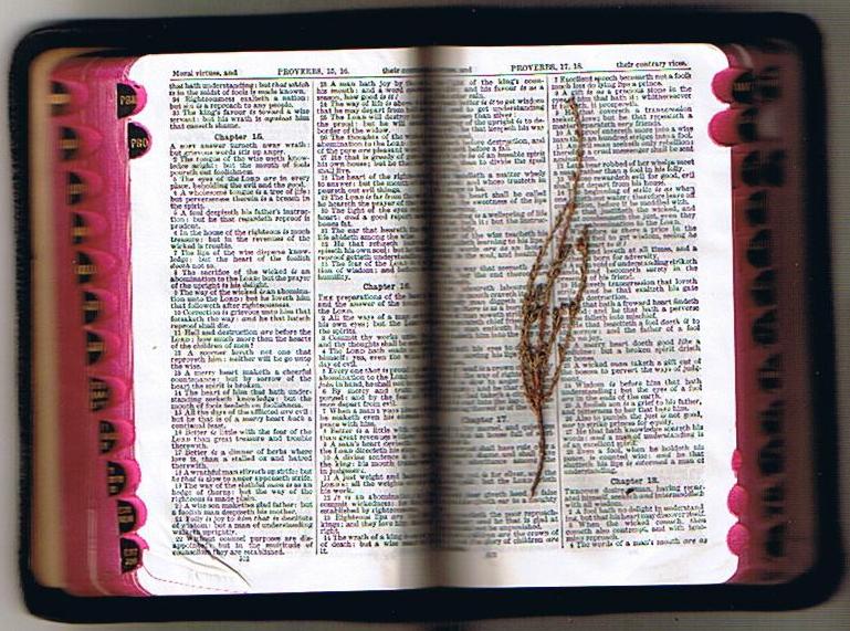 Sprig of Heather which has remained in the bible for nearly 80 years. |